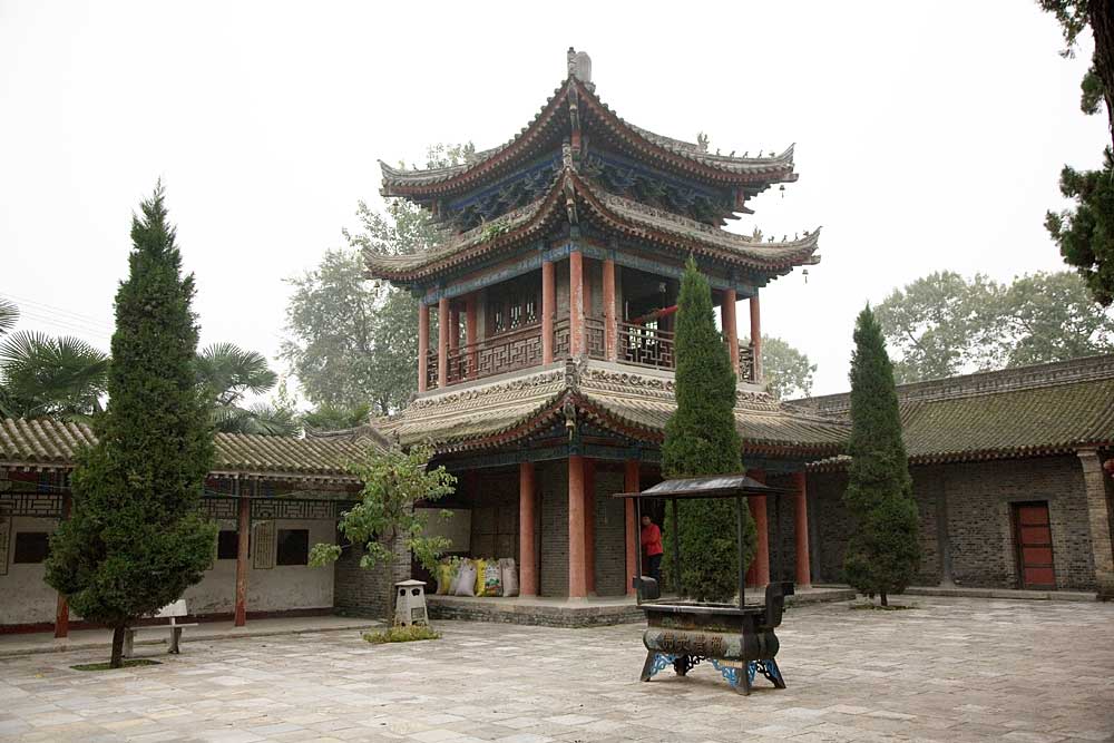 鳩摩羅什圓寂后火化,據(jù)說薪滅形碎,唯舌不燼。其弟子收其舍利,建造舍利塔以紀念之。這就是至今保存完好的“姚秦三藏法師塢摩羅什舍利塔”。舍利塔北邊竹林深處,掩藏著遠近聞名的“煙霧井”。舍利塔亭西側(cè),樹立著元代所刻“逍遙園大草堂棲禪寺宗派圖”碑,
