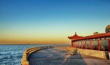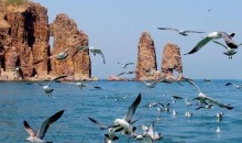 蓬萊海岸線長86公里,基巖海岸與沙質(zhì)岸兼?zhèn)洌胶>吧沱悺E钊R閣以東長約8公里的海灣沙灘潔灘緩,水清浪小,是理想的休閑度假勝地,現(xiàn)由蓬萊閣沿海濱向東修起了寬闊的海濱觀光大道,大道兩人側(cè)建起了海濱公園、海水浴場、八仙石雕、海濱廣場等景點,形成了一條海濱綠化觀光帶,點綴各種刻石小品及雕塑等,風(fēng)景清爽宜人,供人們游覽休憩、度假。