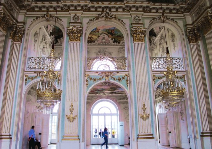 從1701年開始,巴伐利亞公國的繼承人Max Emanuel對(duì)宮殿進(jìn)行了有系統(tǒng)的擴(kuò)建。導(dǎo)游對(duì)古堡建筑的一句介紹,讓我馬上感受到這座老宅的莊嚴(yán),或者說森嚴(yán)。“你們看!”他指著面向游客的一幢石砌的樓說,“從下到上,每一層樓的窗戶的大小都不一樣。一樓(并非緊接著地的底樓,需上臺(tái)階才能到達(dá))是古堡主人———侯爵夫婦的臥室,窗戶是最大的;二樓是他們小孩的臥室,窗戶比一樓小;三樓是家庭教師的住所,窗戶更小;最小的窗戶則是仆人的房間,在頂樓。”