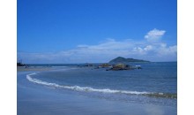 大角灣風(fēng)景名勝區(qū)位于廣東陽江市海陵島西南端,三面群峰拱護,面向浩瀚南海,沙灘長2.5公里,寬100米,因狀似牛角,故名“大角灣”。這里地處南亞熱帶,全年日照時間長,年平均氣溫22.8℃,水溫23.5℃,降雨量1816毫米,年晴天數(shù)310天,四季氣侯宜人,素以陽光燦爛明媚,沙質(zhì)均勻松軟,海水清澈純凈,空氣清新純潔而著稱,各類質(zhì)素均達國際一類(級)標(biāo)準(zhǔn),又因沙灘寬闊平坦。