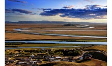 黃河第一彎地勢平坦,水流舒緩,小島、岸邊紅柳成林。索克藏寺院修筑于黃河第一彎山凹臨河處,白塔古寺,帳篷炊煙相伴黃河,更顯自然悠遠(yuǎn)博大,這里有四川省最大的草原,面積近3萬平方公里,由草甸草原和沼澤組成。,第一灣位于若爾蓋縣唐克鄉(xiāng),距縣城61公里。地處草原腹心地帶,白河于此匯入黃河,形成浩大氣勢,草原地勢平坦,一望無際,人煙稀少。紅軍二萬五千里長征曾多次通過這里