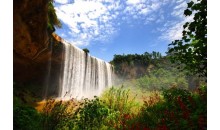 全國罕見的青龍大瀑布位于武夷山大峽谷生態(tài)公園西側(cè),距主景區(qū)30千米,距大峽谷生態(tài)漂流碼頭2千米,瀑布周圍森木茂密,水源十分豐富。深谷絕壁上,一道大瀑布飛流而下,直瀉深谷,長200多米,落差120多米,最寬處40余米。當(dāng)您來到青龍大瀑布景區(qū)時,真切地讓人感受到無法抗拒的大自然魅力,只風(fēng)奔騰的“通天河”水,猶如一條青龍銀狀從峽谷間呼嘯而出,群瀑沖下一潭又一潭的深流,排風(fēng)帶勢,澎湃咆哮,激浪翻騰,飛珠濺飛,激起陣陣轟鳴雷動,百米之外水氣蒙蒙遠眺仿佛素練懸空,銀龍飛舞,最后盤旋在赤壁峽谷間,右沖左突匯入桐木溪。