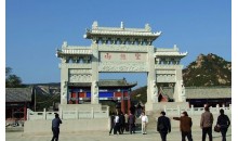 秦代立石,位于山東省榮成市龍須島鎮(zhèn)成山頭。是一塊年代久遠(yuǎn)的石制碑刻。據(jù)說(shuō)公元前219年,秦始皇東巡至成山頭,以為到達(dá)天的盡頭。命丞相李斯寫下:“天盡頭秦東門”幾個(gè)大字,立碑于成山頭頂峰。因年代久遠(yuǎn),石碑?dāng)喑蓛山兀习虢赜凶植糠致淙氪蠛#F(xiàn)存山頂?shù)牡鬃?20厘米,寬145厘米,厚75厘米。據(jù)專家考證:此碑石質(zhì)為水成巖,與成山石質(zhì)不同,確是秦代立石。