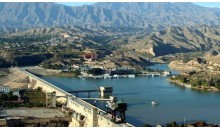 在甘肅永靖縣境內(nèi)。黃河兩岸崇山峻嶺, 形成峽谷。1974年建成具有發(fā)電、防洪、灌溉、養(yǎng)殖、航運(yùn)等功能的綜合性水利樞紐工程。一條長(zhǎng)840米、高147米的巨大攔河壩把黃河攔腰斬?cái)? 形成了劉家峽水庫(庫容57億立方米,水域面積130平方公里),大壩下安裝了五臺(tái)國產(chǎn)大型水輪發(fā)電機(jī)組,成了總裝機(jī)容量122.5萬千瓦年發(fā)電量57億度的黃河上游第一座水力發(fā)電站。