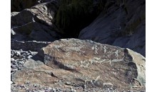 克爾堿巖畫位于托克遜縣庫加依鎮(zhèn)境內(nèi),南距鎮(zhèn)政府約4.5千米,巖畫散布在鎮(zhèn)北的克爾堿 溝兩岸,畫面內(nèi)容主要有:羊、牧羊人、鹿、狗、駱駝以及狩獵、放牧等場面。其中一幅水系圖令人注目。巖畫基巖均為侏羅紀(jì)粗砂巖。相傳有位神匠途經(jīng)此地,眼見四周環(huán)境優(yōu)美,于是整日靜坐在河岸欣賞,后將四周景色逐一刻畫于巖壁上,形成人們今天看到的巖畫。