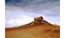 屬唐代護(hù)路烽燧,位于火焰山北麓一條干涸河道兩側(cè),七泉湖火車站正南11公里,有小路通遺址旁。七泉湖薩依烽燧為古代穿越火焰山通道上的重要遺址,現(xiàn)外表呈梯形,分上下兩層,每層又分左右兩室,在臺階可登上層瞭望周圍景觀。