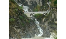虎跳峽,中國最深的峽谷之一。在云南省玉龍納西族自治縣(原麗江納西族自治縣)龍蟠鄉(xiāng)東北。峽谷長16公里,南岸玉龍雪山主峰海拔5,596米,北岸中甸雪山海拔5,396米,中間江流寬僅30~60公尺。虎跳峽的上峽口海拔1,800公尺,下峽口海拔1,630公尺,兩岸山嶺和江面相差2,500~3,000公尺,谷坡陡峭,蔚為壯觀。