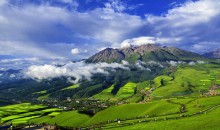 雅拉神山雅拉神山屬于四川省泰寧、玉科自然保護(hù)區(qū)的一部分,位于道孚、康定、丹巴三縣交界處,藏族古籍稱其為“第二香巴拉”。雅拉雪山主峰海拔5820米,又稱海子山、亞拉神山,是大雪山的主峰之一,為《格薩爾王傳》記載的四座神山之一,有“東方白牦牛”之稱,該山地跨道孚、康定、丹巴三縣,其西北面與塔公草原相連,形成雪山與草原交相輝映的壯美景觀。雅拉雪山主峰海終年積雪覆蓋,盛夏時日,在如花似錦的塔公草原上觀瞻雅拉雪峰,有如臨仙界之感。神山在當(dāng)?shù)赜袠O高威望。