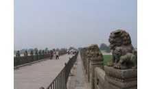 盧溝橋(Lugou Bridge)亦作蘆溝橋,在北京市西南約15千米處豐臺區(qū)永定河上。因橫跨盧溝河(即永定河)而得名,是北京市現存最古老的石造聯拱橋。盧溝橋全長266.5米,寬7.5米,最寬處可達9.3米。有橋墩十座,共11個橋孔,整個橋身都是石體結構,關鍵部位均有銀錠鐵榫連接,為華北最長的古代石橋。