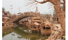 麻龍灣景區(qū)是一座以著名畫卷《清明上河圖》為藍(lán)本的大型泥塑文化藝術(shù)園林。它始建于2007年,占地面積200多畝,累計投資約1.2億元。它以精湛的泥塑藝術(shù),把名畫《清明上河圖》中汴河兩岸的繁華景象立體的、全方位的呈現(xiàn)在世人面前,也就是說麻龍灣將《清明上河圖》“復(fù)活”了,每件泥塑作品都取之于當(dāng)?shù)氐狞S土,用泥塑成,但它卻要比黃金更加寶貴。