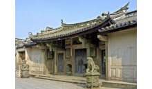 琳瑯滿目的建筑裝飾,使整座建筑物顯得更加富麗堂皇,首進(jìn)門樓前理分置精致石獅一對(duì),門樓屋架為雙面鏤空石雕。而最令人嘆為觀止的還是鑲嵌于門樓石壁上的四幅石雕.這四幅石雕分別以土農(nóng)工商,漁樵耕讀,花鳥(niǎo)蟲魚為題材,每幅石刻都很好地運(yùn)用了“之”字形的構(gòu)圖,將不同時(shí)空的人、事、物集中在同一畫面,濃縮故事情有節(jié)。表現(xiàn)最富戲劇性的瞬間。