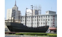 港灣廣場位于大連市中山區(qū)人民路西端的盡頭,是大連港客運碼頭前的交通廣場。港灣廣場占地面積1.5萬平方米,其中中心綠地面積5300平方米。廣場中間是銅制的鄭和下西洋的帆船模型,展現(xiàn)了中國古代的航海文明。廣場西北角是大連服裝交易市場和大連古玩交易市場。港灣廣場建設至今經(jīng)過了多次改造。