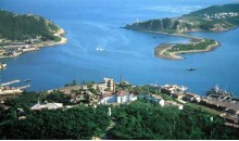 公園風光秀麗,景色旖旎,海岸線長達1200余米,是山峰、森林、碧海、草地等為主要自然景觀的海濱公園。7.6公里長的游覽路線上有兩處精彩景點:一是左右盤旋跨山過嶺的十八盤,景觀奇特,居高臨下,路面似銀帶飄向海濱,素有“海底大峽谷”之稱;二是翻過十八盤之名叫“怪坡”的景點,那里汽車上坡與下坡呈反常狀態(tài),妙趣橫生。此外,還有“海之韻廣場”、仿古戰(zhàn)艦等景觀。