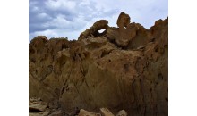 阿克蘇拜城縣鐵熱克鎮(zhèn)境內(nèi),距縣城38公里,交通便利。地理坐標(biāo)81°32′27″E,41°58′00″N,海拔1670米。石腳印位于卡普斯浪河左岸一級地上,在它旁邊是一深切小溝谷,源頭為一苦泉,沿第三紀(jì)砂巖裂縫向外滴流。據(jù)說此苦泉水可治眼病,每年都有許多本地群眾前來洗眼治病,石腳印在一橢圓形的深褐色火巖礫石上,為一深陷的左腳印,印紋深約3厘米,長約28厘米,寬約9.5厘米。