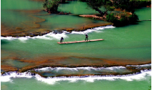 羅平多依河位于羅平縣城東南40公里,經(jīng)十萬(wàn)大山峰叢至多依寨子進(jìn)入景區(qū)。景區(qū)從多依寨至“雞嗚三省”的三江口,全長(zhǎng)12公里的河床上有近40個(gè)瀑布,兩岸古木修竹,色彩豐富,層次清晰。河水常年晶瑩剔透,蔚藍(lán)無(wú)邊。尤其是沿河兩岸盤根錯(cuò)節(jié)的干年古樹,仿佛就是一座龐大的自然根雕藝術(shù)展覽館。河道蜿蜒曲折,布依村寨沿河而布,吊腳樓隱現(xiàn)樹叢竹林之間,一派十足的熱帶風(fēng)光畫面。一水合三江、清江一邊淌、渾水一邊流的奇觀異景就在此顯現(xiàn)。