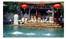 趵突泉位于濟南市中心區(qū),趵突泉南路和濼源大街中段,南靠千佛山,東臨泉城廣場,北望大明湖,面積158畝,是以泉為主的特色園林。該泉位居濟南七十二名泉之首,被譽為“天下第一泉”,也是最早見于古代文獻的濟南名泉。趵突泉是泉城濟南的象征與標志,與千佛山、大明湖并稱為濟南三大名勝。