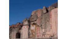經(jīng)石峪金剛經(jīng)刻位于斗母宮東北經(jīng)石峪,是中國(guó)現(xiàn)存規(guī)模最大的佛經(jīng)摩崖刻石。 經(jīng)文刻于面積2064平方米的緩坡石坪上,自東而西刻《金剛般若波羅密經(jīng)》,采用后秦鳩摩羅什譯本,原本全1卷、32分目、5172字,經(jīng)刻只刻到15分目“特經(jīng)功德 兮”,計(jì)44行,每行125字或10字不等,凡2799字,字徑50厘米。經(jīng)刻歷千余年風(fēng) 雨剝蝕、山洪沖擊、游人踐踏、捶拓?zé)o度,已殘泐磨滅過(guò)半,現(xiàn)僅存經(jīng)文41行、 1069字(包括可認(rèn)讀的殘字和雙勾字)。