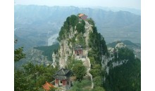 南望壁立千仞,北眺漫延開闊。自南麓,登千余級連云棧道,過南天門,可達峰頂。山巔檜松掩映,遮天蔽日,千年古木,千姿萬狀。風暢日麗,清幽寧靜,時見松鼠戲斗,雉雞啾鳴。松濤徐徐,淡香撲鼻,大氣清新。登絕頂遠眺“二水(指大石水和玉泉水)燕尾之交,委曲容于其下,仿佛巫峽寒江矣(明朝進士傅國評玉泉山語])”。