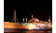 “海上城市”原名“巴西瑪魯”,是日本一艘國際遠航客貨輪,已有四五十年的歷史,船長 156米、寬19.6米,共有七層,排水量達1.7萬噸。1954年下水,1951年載中日友好青年代表團訪問中國,后改為旅游船,停泊在日本旅游勝地鳥羽市港灣,1997年由珠海華瑩集團引進,次年落戶于湛江,與雄偉的南海艦隊軍港隔海相望。
