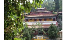 梨花塢又名大梨園,塢中建有同名寺院,主建筑慈云閣層樓高聳,飛檐翼然,古樸莊嚴,為大慈大悲觀世音菩薩安享人間香火之所;附屬建筑藏經(jīng)樓、讀畫樓、醉月樓、菩提樓、養(yǎng)云池、雨花亭、瑞雪嶺等亭臺樓閣皆依山構(gòu)筑,錯落有致而又此呼彼應(yīng)地構(gòu)成一個嚴整的建筑群體。寺前一彎山溪如吟似奏