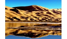 騰格里沙漠月亮湖旅游區(qū) 位于中國(guó)內(nèi)蒙古阿拉善盟境內(nèi)騰格里沙漠腹地,月亮湖是距離國(guó)內(nèi)各大城市半徑最短的沙漠探險(xiǎn)營(yíng)地,是現(xiàn)代都市人尋求緊張競(jìng)爭(zhēng)生活之外的驚險(xiǎn)刺激與徹底放松身心的最佳游程。月亮湖有三個(gè)獨(dú)特之處:一是形狀酷似中國(guó)地圖:站在高處沙丘一看,一幅完整的中國(guó)地圖展現(xiàn)在眼前,蘆葦?shù)姆植几菍⒏魇^(qū)一一標(biāo)明;二是湖水天然藥浴配方:面積三平方公里的湖水,富含鉀鹽、錳鹽、少量硭硝、天然蘇打、天然堿、氧化鐵及其它微量元素,與國(guó)際保健機(jī)構(gòu)推薦藥浴配方極其相似。